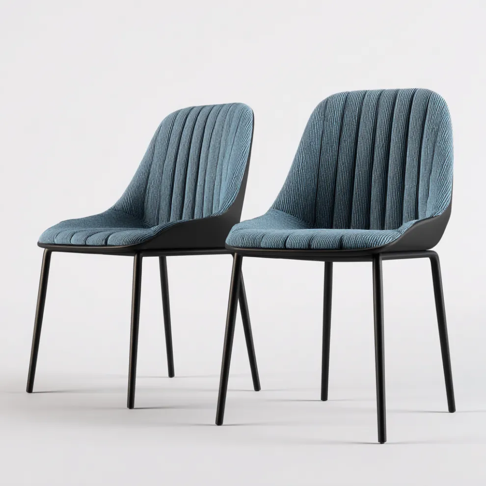 Queste sedie da pranzo combinano rivestimento in pelle artificiale e seduta in tessuto offrendo un'estetica moderna e confortevole. La forma avvolgente della scocca garantisce un buon sostegno durante l'uso quotidiano.